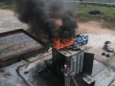 大流量压缩空气泡沫主战车配套2台举高消防车灭火油罐火试验